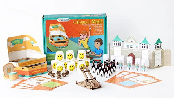 Funvention | Catapult Mania - Build & Play 6 Unique Games - DIY Science Educational Toy for Kids-STEM Kit for Kids, Educational Games, DIY Kit for Kids