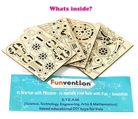 Funvention| for Little Scientist in Every Kid DIY Miniature Mechanical Wooden Models with Standee for Kids - Set of 12 Flat Pack (6x4 Designs)