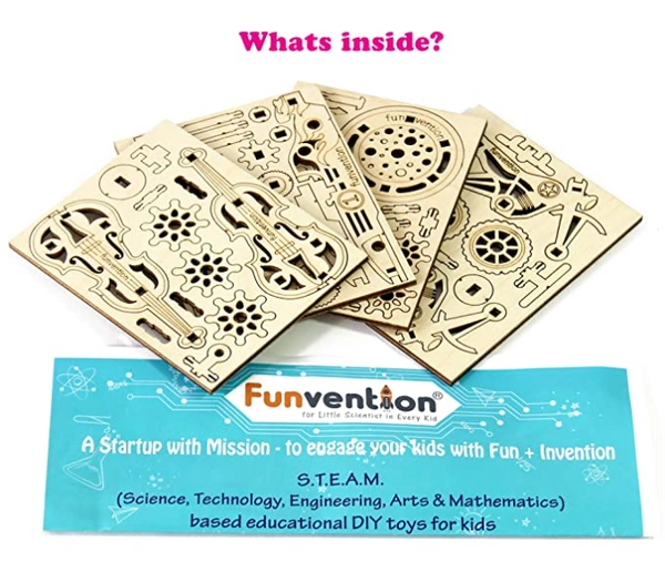 Made In India. Innovative DIY S.T.E.M. Educational toy kit contain environment friendly imported wooden parts, detailed easy to understand step-by-step instruction manual