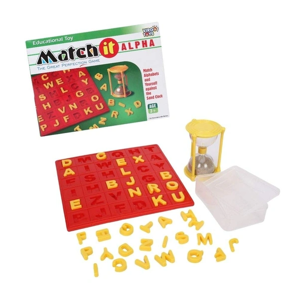 • Match it Alpha-Numero set consists of alphabets, numbers, plastic trays with cavities and a sand timer